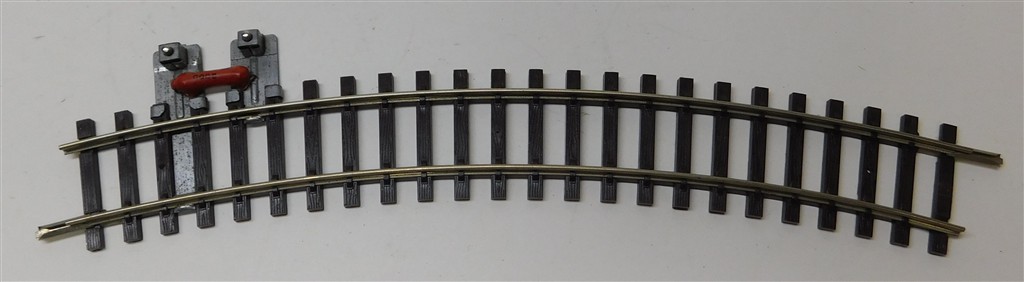 A Hornby Dublo 2 rail 1st radius curved terminal rail, in good used condition, no original box