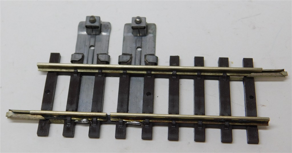 A Hornby Dublo 2 rail 1/3rd isolating straight rail, far rail isolated, in good used condition, no original box
