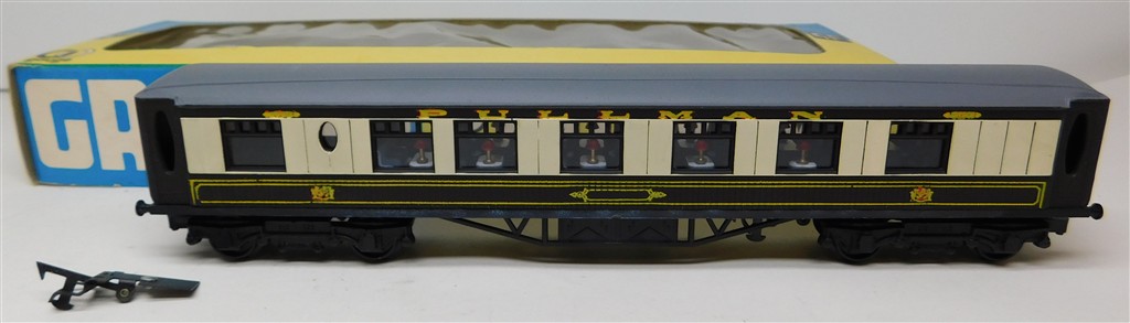 A Graham Farish Pullman car, unnamed, 1970s production, not warped, loose coupling otherise in good used condition, supplied in the original box with unused transfer sheet (A)