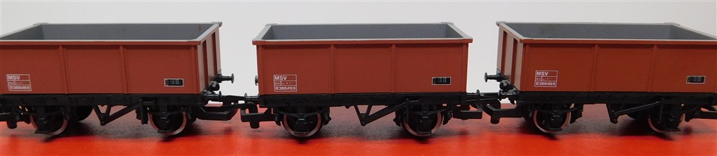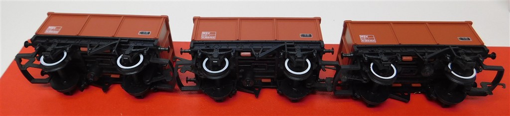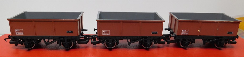 3 Hornby MSV stone wagons, plastic wheels, in good used condition, no original box