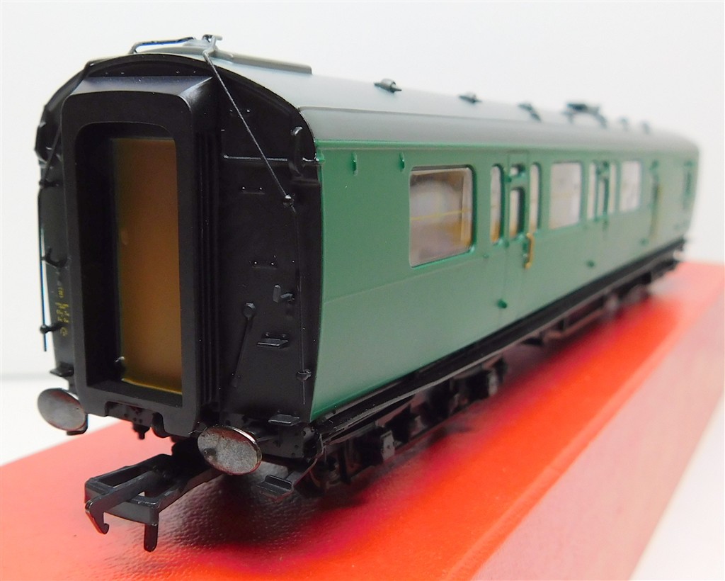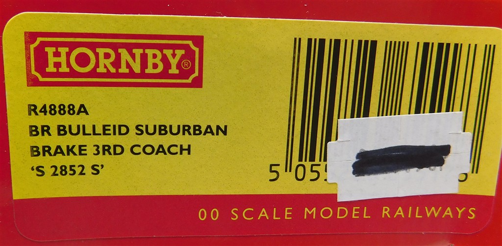 A Hornby R4888A BR Bullied Suburban Brake 3rd coach S2852S, missing vent, added tail lamp, glue spots on windows, in fair condition, supplied in the original box, please study the photographs carefully