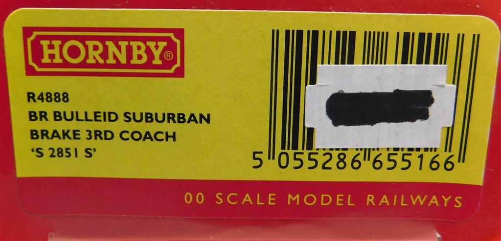 00 Coaches: Hornby R4888 BR Bullied Suburban Brake 3rd coach S2851S