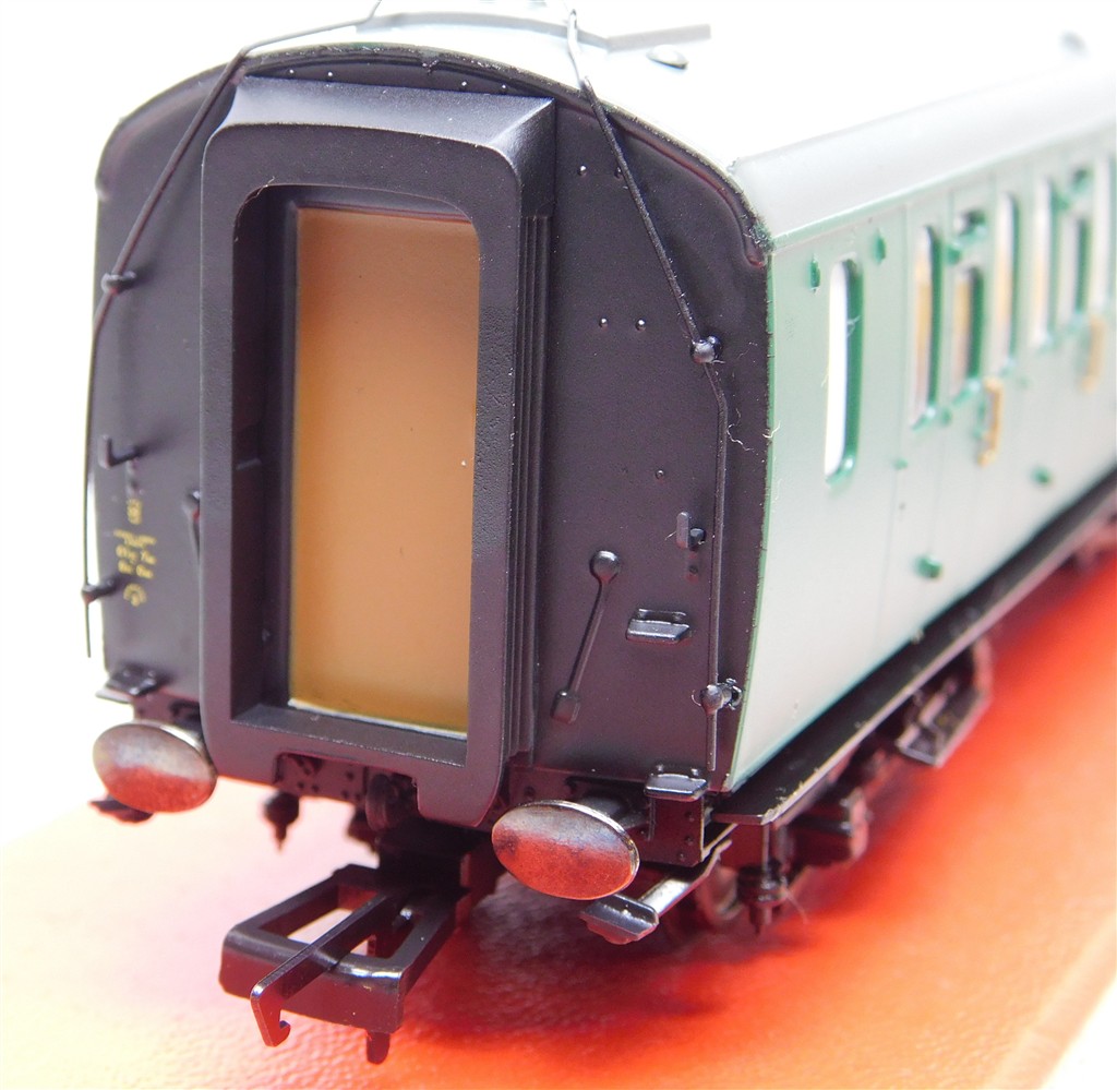 00 Coaches: Hornby R4886 BR Bullied Suburban Composite coach S5714S, extensive glue spots/blistered paint, weathering candidate?