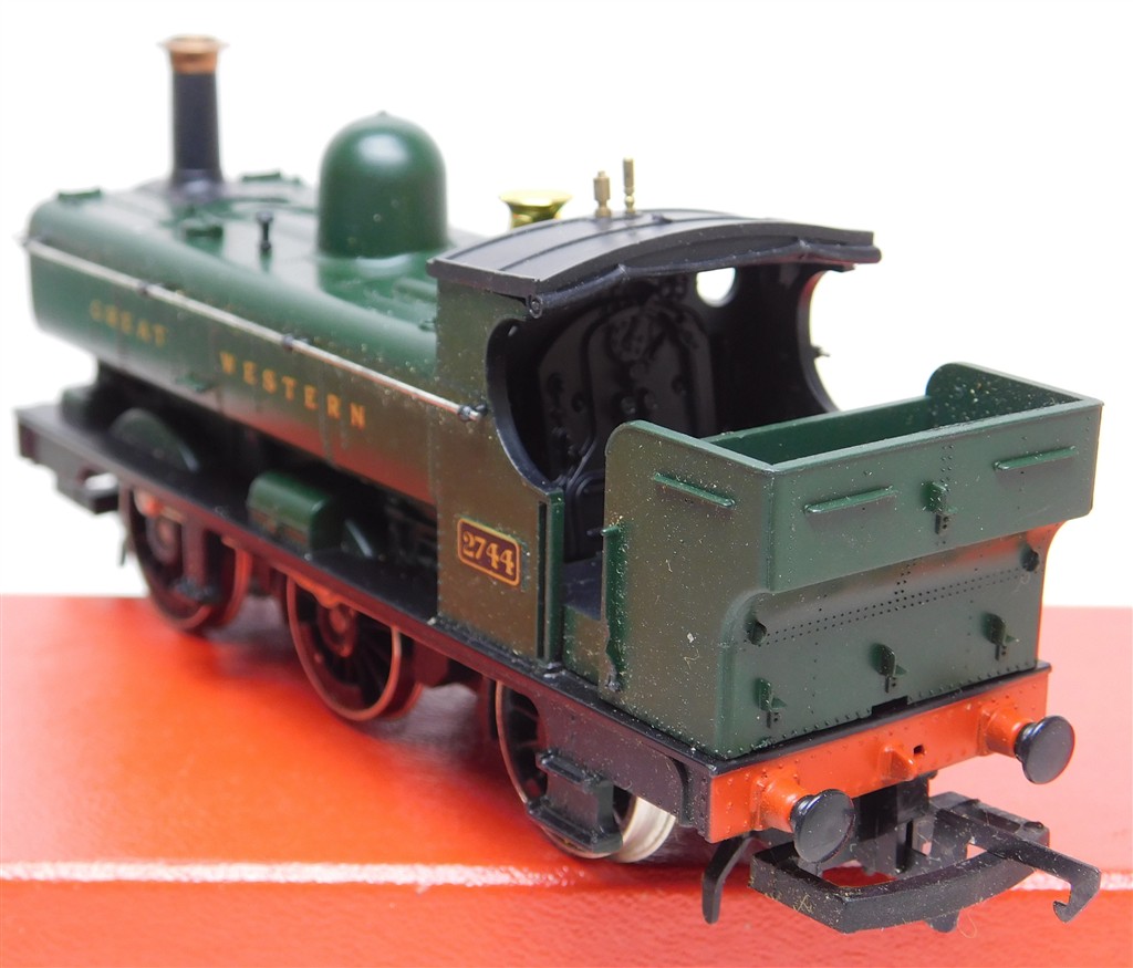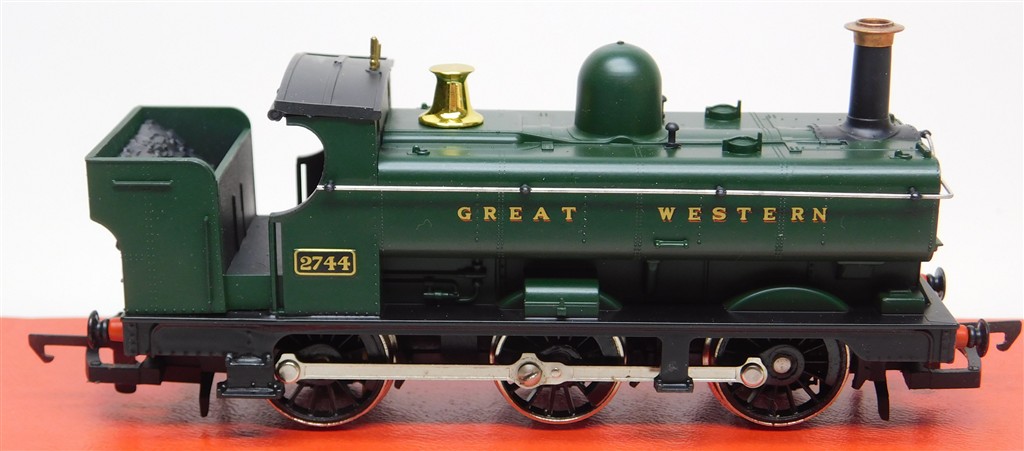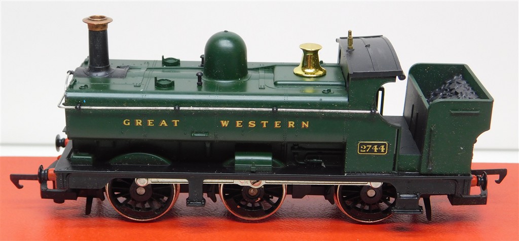 An early 1980s production Hornby GWR Half Cab Pannier 0-6-0T steam loco number 2744, tested and a good runner and good used condition, no original box.