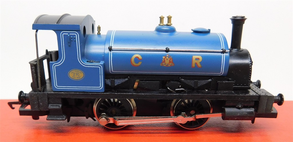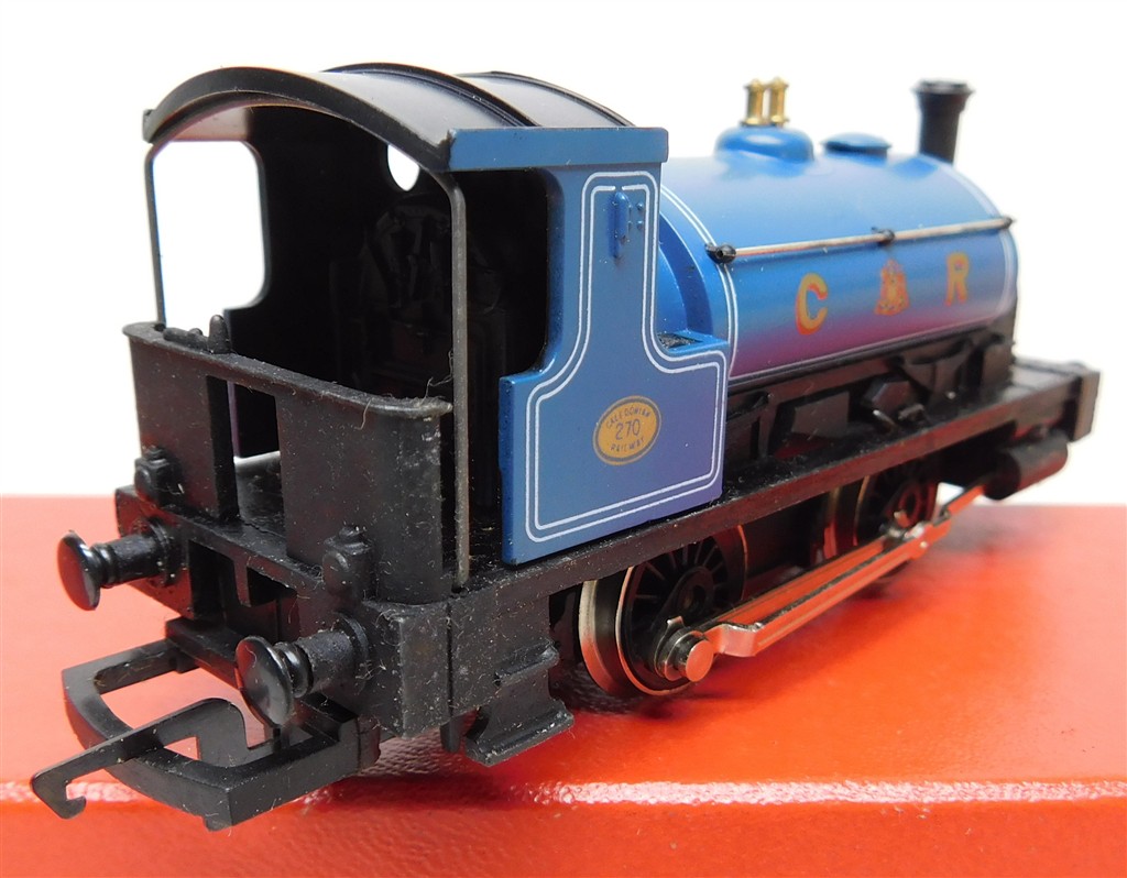 An early 1980s production Hornby Caledonian Railway Pug 0-4-0ST steam loco number 270, missing front coupling hook, tested and a good if slightly fast runner and good used condition, needs a clean, no original box.