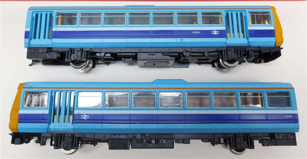 A Hornby 1980s production BR blue class 142 Pacer diesel railcar pair 142048, good if noisy runner, in good condition, no original box