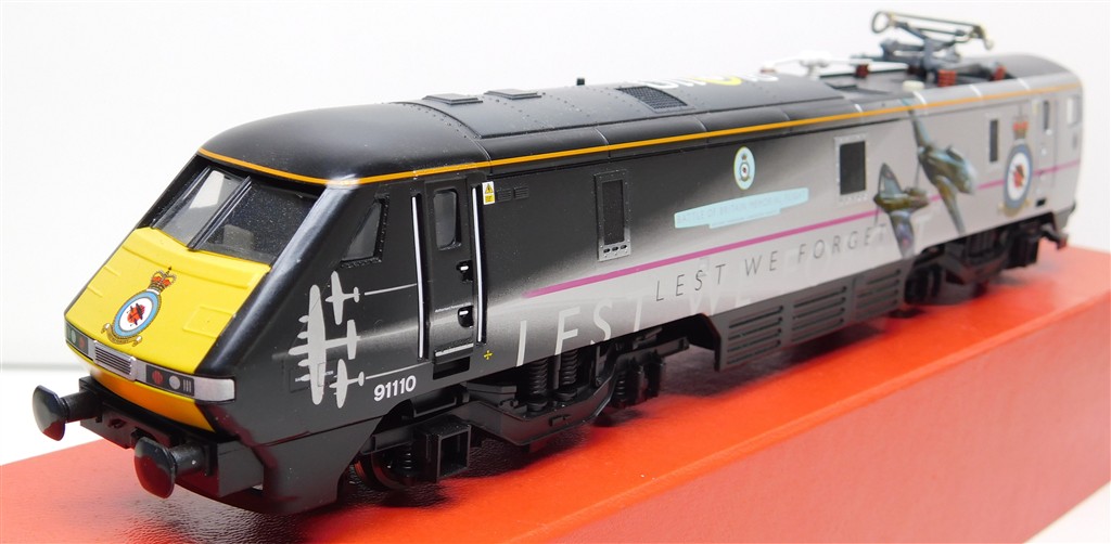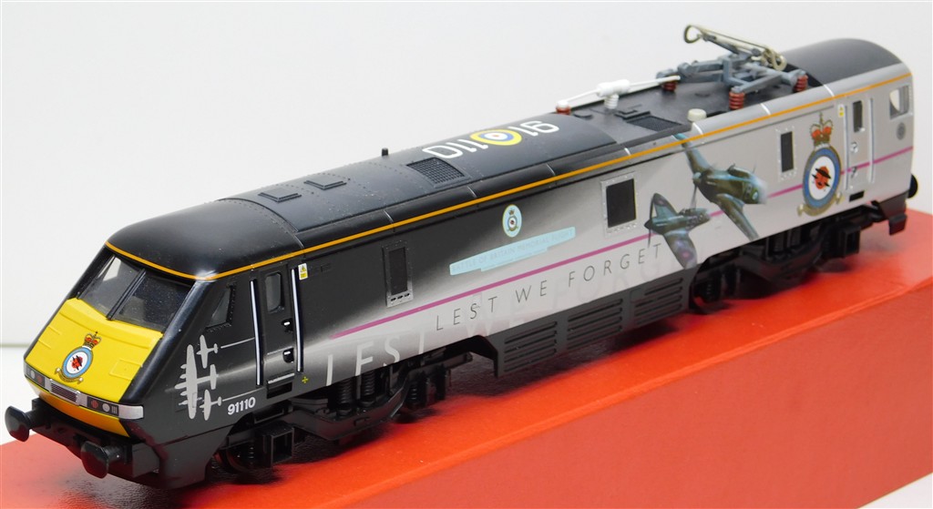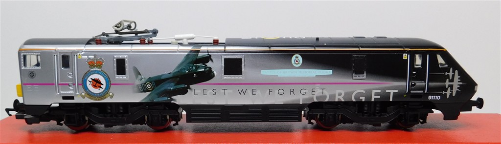 A Hornby LNER class 91 electric loco 91110 Battle of Britain Memorial Flight, ringfield motor drive, good runner, in good condition, no original box