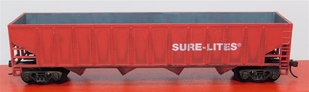 A Mehano H0 scale weathered Sure-Lites hopper car with Kadee type couplings, in good used condition, no original box