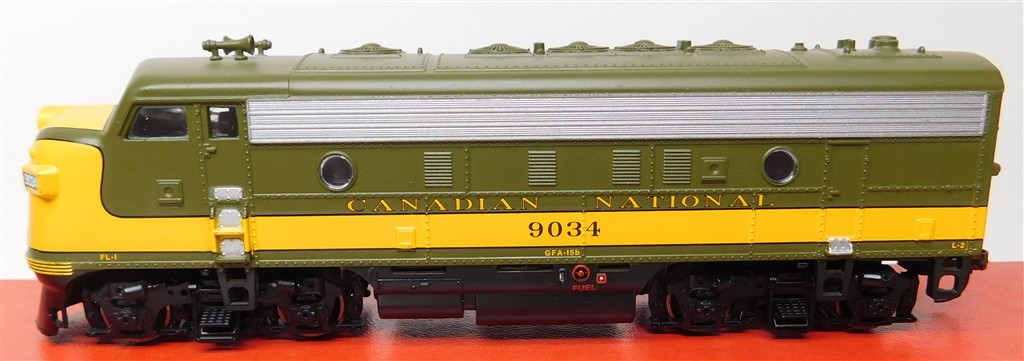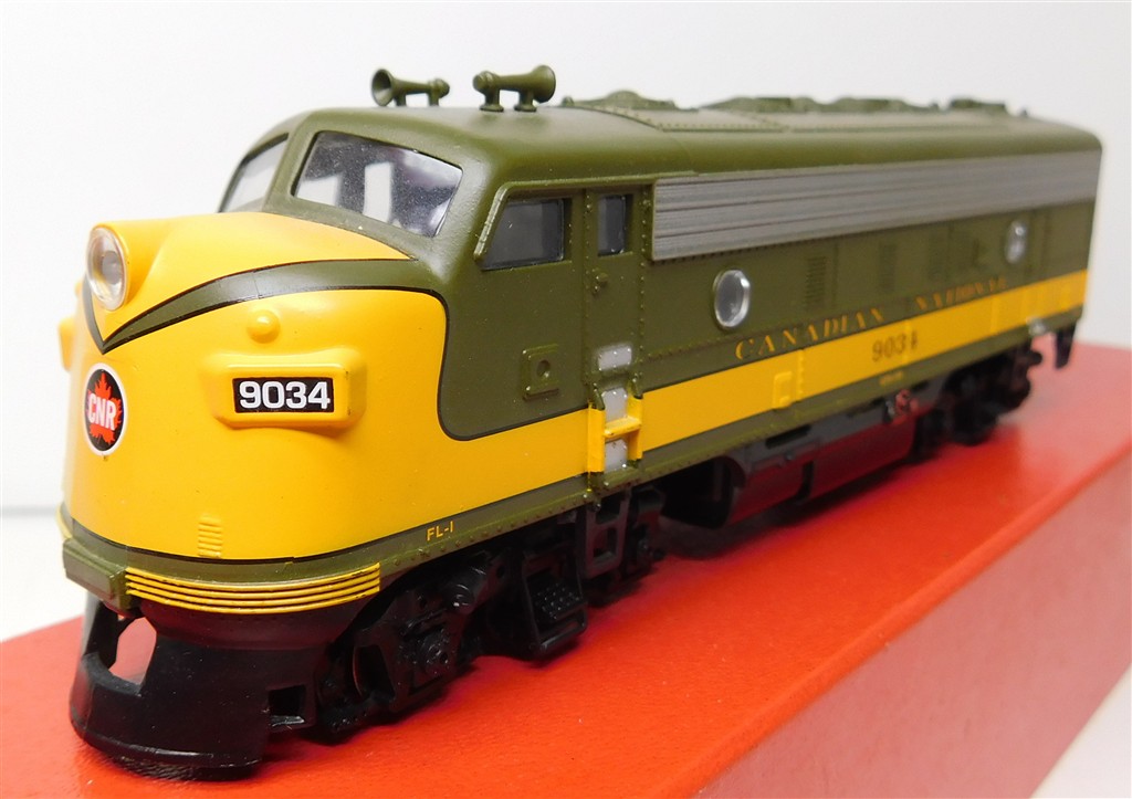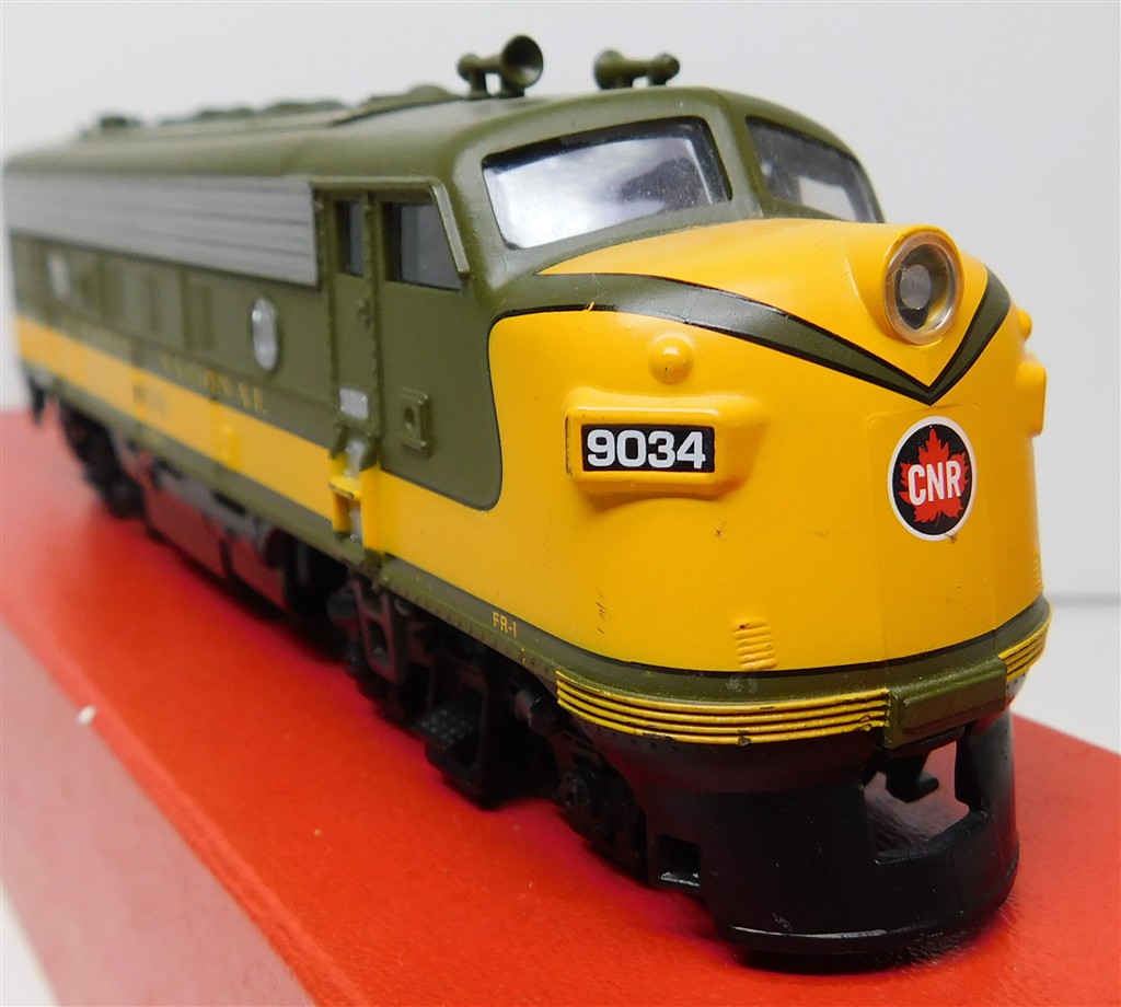 An Athearn H0 scale Canadian National F7 diesel loco number 9034, good runner with working non-directional headlight, Kadee type couplings, in good condition, supplied in a tatty original box outer only