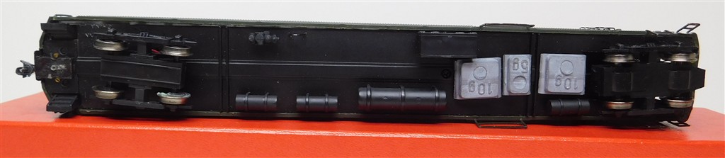 A Bachmann 81412 H0 scale New York Central Doodlebug M-203, safety stripe livery, Lenz DCC fitted, good runner, working non-directional headlights, EZmate rear coupling, in good condition, supplied in the original box with instructions.