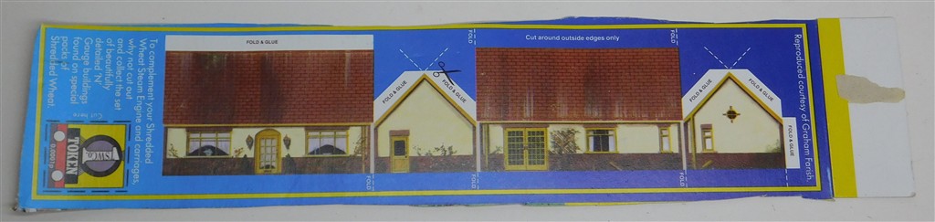 A Graham Farish for Shredded Wheat cardboard station building, from the side of the cereal box, often lost with the Shredded Wheat loco