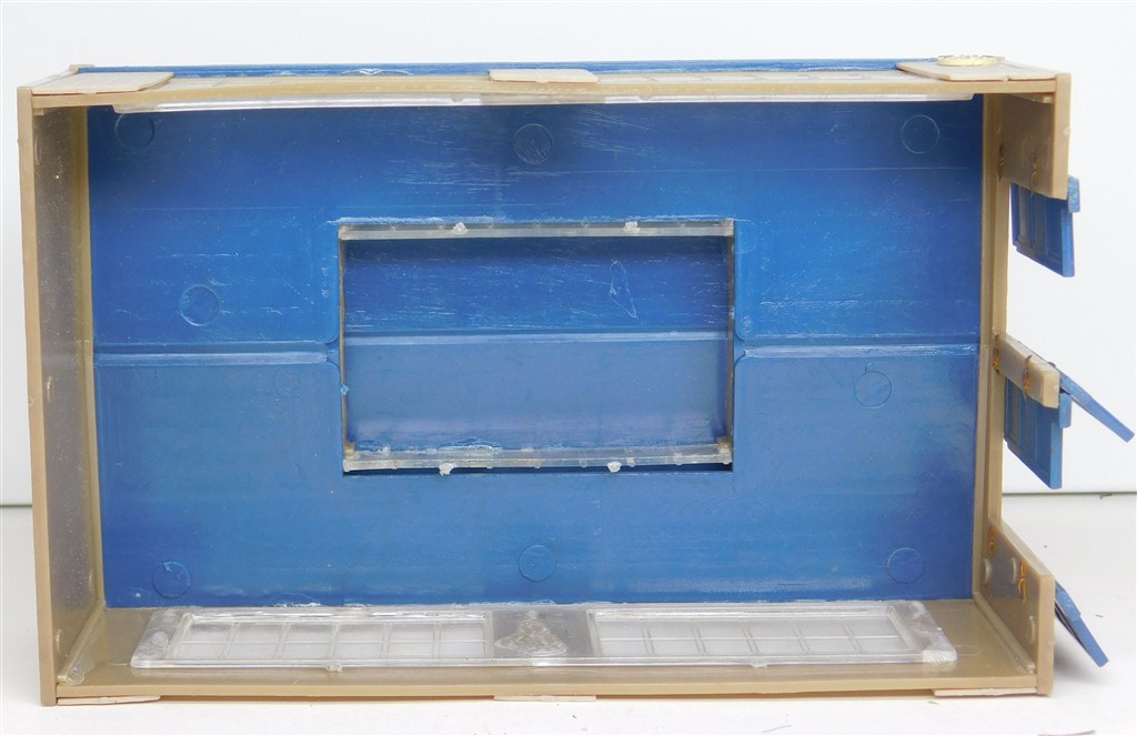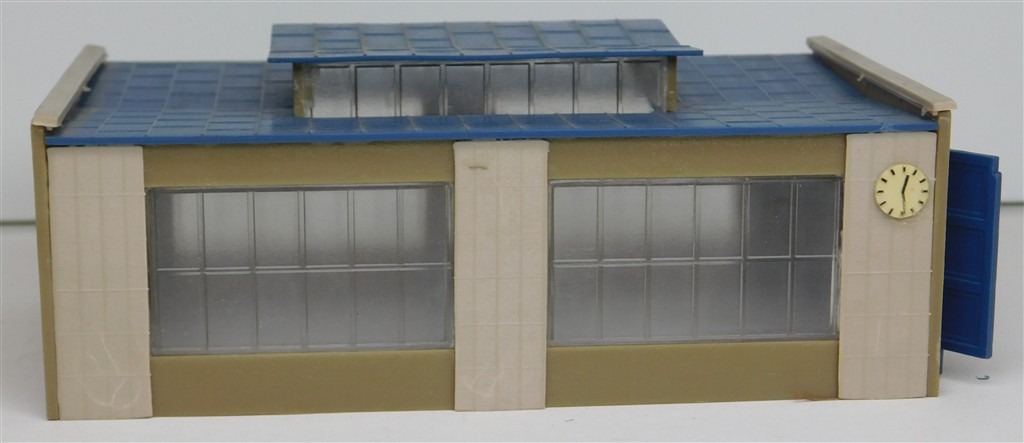 A Temos 513/567 N gauge German assembled plastic 2 track diesel loco shed, made in East Germany, opening doors, in good condition, supplied in the original box