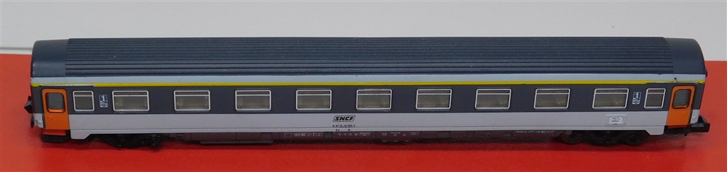 European N gauge: Roco N gauge SNCF French 1st class coach number 61 87 19-70 353-3, missing two wheelsets and one buffer