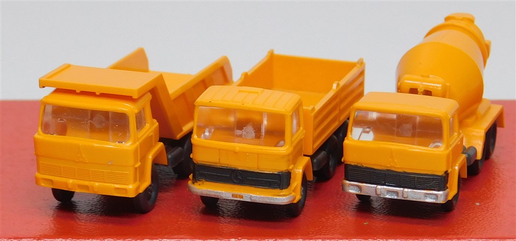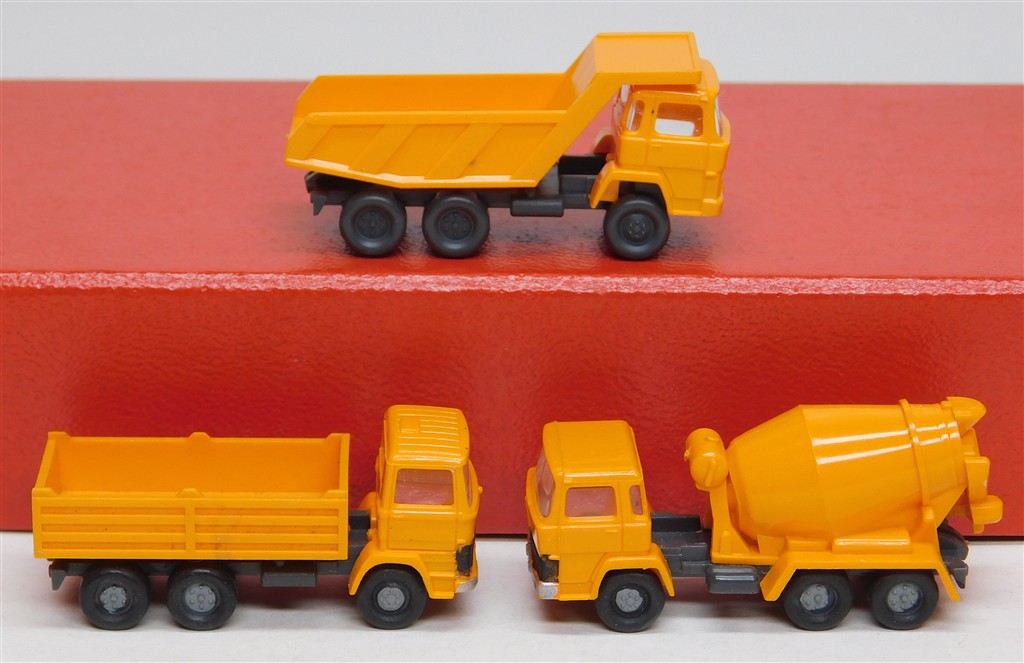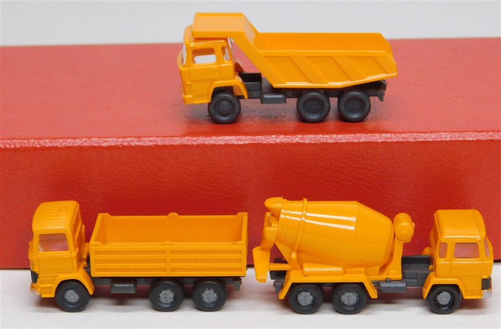 European N gauge: 3 Wiking N gauge construction site vehicles: a cement mixer and two different tipplers