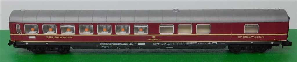 European N gauge: Fleischmann N gauge German DB Restaurant Car number 61 80 88-80 212-0