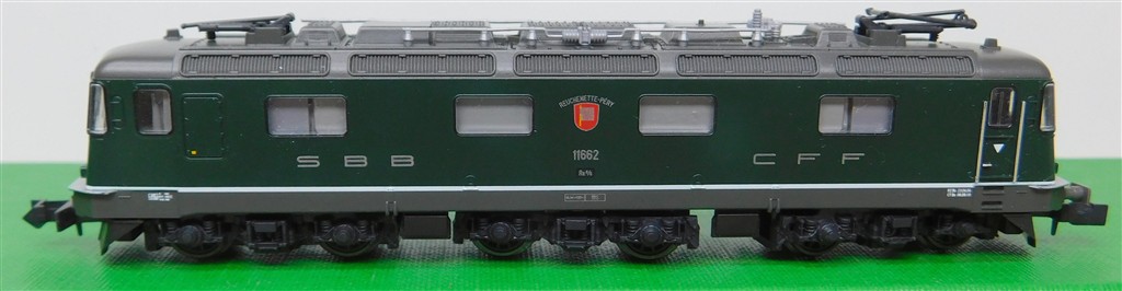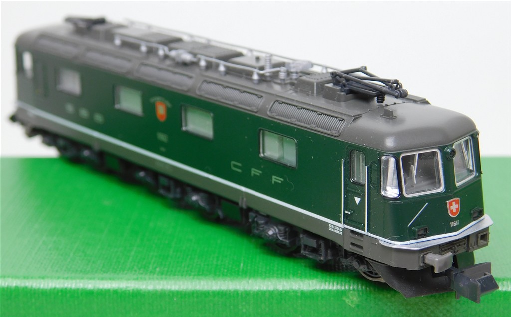 European N gauge: Kato K10174 N gauge Swiss Re6/6II electric loco 11662, good runner, incomplete pantographs and other parts missing