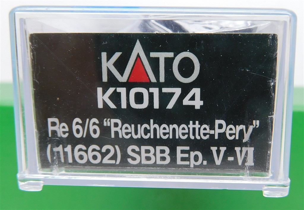 A Kato K10174 N gauge Swiss Re6/6II electric loco 11662, good runner with directional headlights, missing pantographs and other roof details, buffers, loose couplings, in fair condition, supplied in the original box