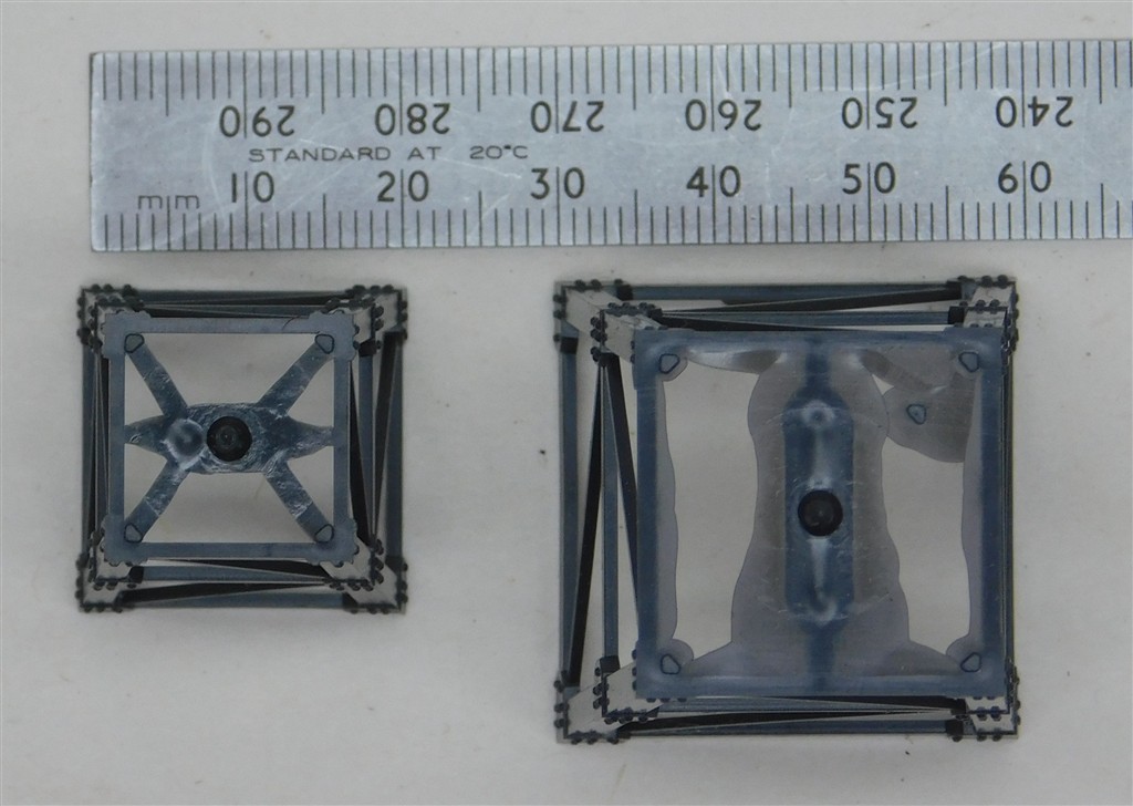 An unused Vero 51066 Stako 011 conical steel truss frames, mostly in unopened packets, may have the odd broken strut. Builds 4 sets, base 36mm square, larger truss 30mm square at bottom and 21mm square at the top, 44mm tall; smaller truss 21mm square at the bottom and 10mm square at the top, 32mm tall.