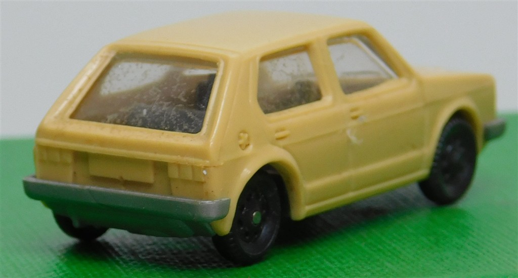 A Fleischmann H0 scale pale yellow Volkswagen Golf car, faded otherwise in fair condition, no original box
