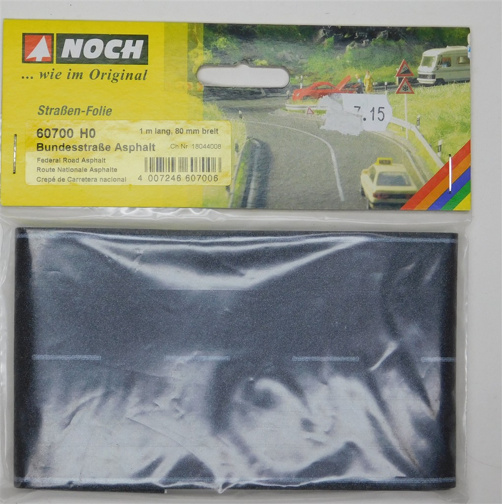 An unopened Noch 60700 German road asphalt strip, 1m long, 80mm wide, may be supplied in a Gaugemaster packet