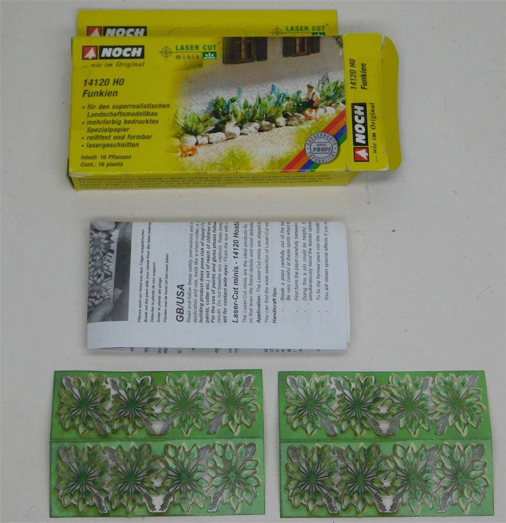 An opened but unused Busch H0 scale Laser-Cut Mini Plants kit supplied in the original box with instructions: 14120: Hostas (16)