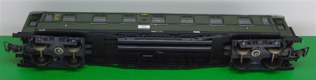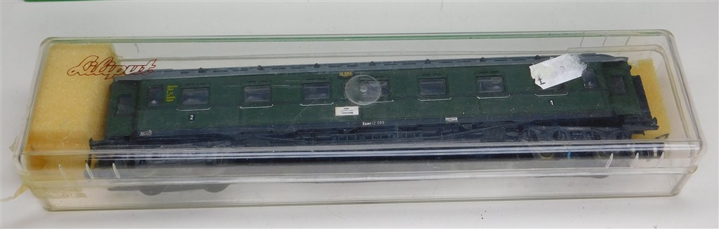 A Liliput German DRG Prussian 1st/2nd class clerestory coach number 12089, with metal wheels and bogie mounted couplings, in good condition, supplied in an incorrect original box