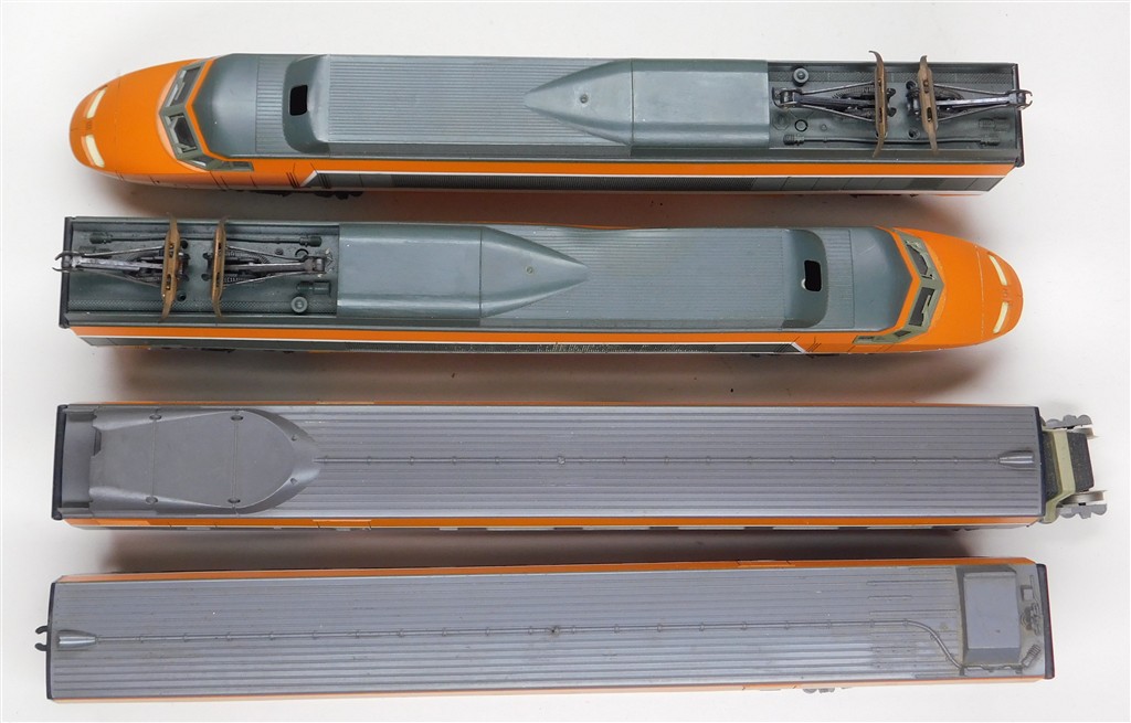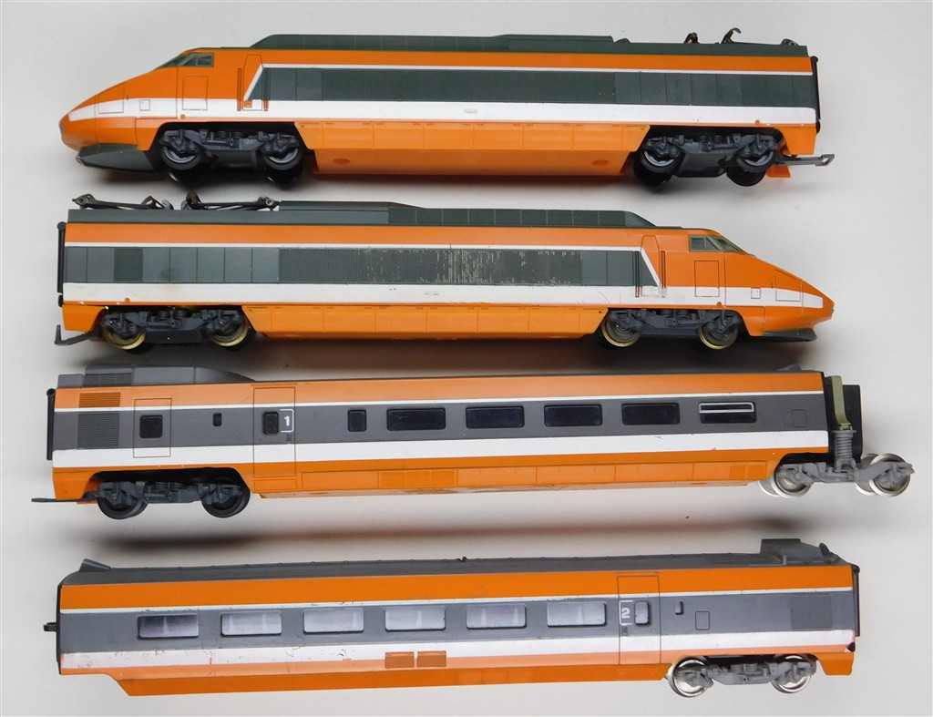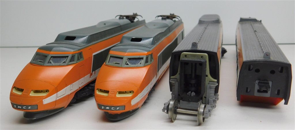 European H0 Projects: Lima SNCF 4 car orange TGV, distorted body, very reluctant runner, a project please read