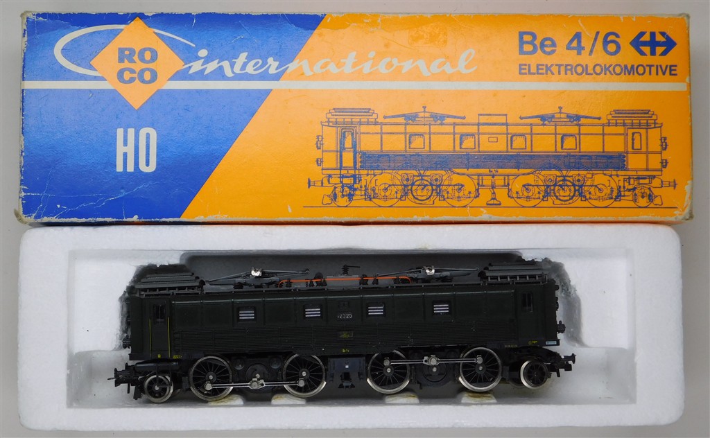 A Roco 04191A Swiss SBB Be4/6, noisy runner that needs a thorough electrical clean and lubrication, missing a buffer and some roof detail, supplied in the tatty original box