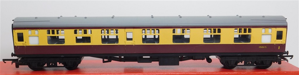 A Tri-ang R626 BR Maroon and Cream Composite Coach number 15865, pin-point wheels, in good condition, supplied in the original window box