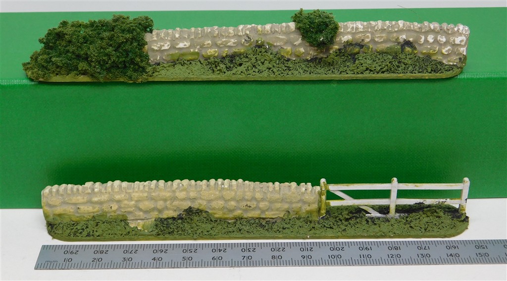 2 00 gauge stone wall sections, each around 150mm long, make unknown