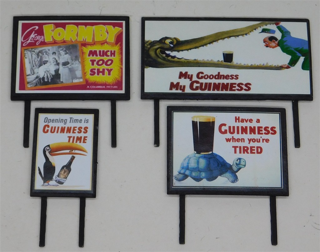 4 00 gauge poster hoardings - Guinness and George Formby, make unknown