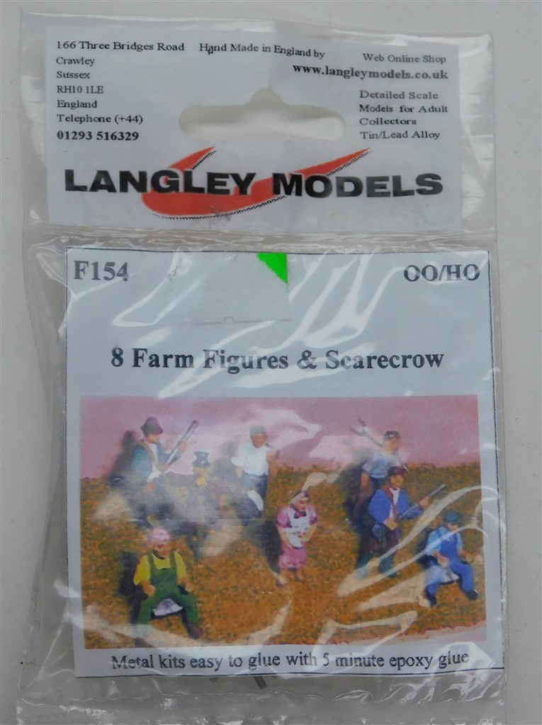 00 Accessories: Langley Minature Models F154 unpainted 8 farm figures and scarecrow