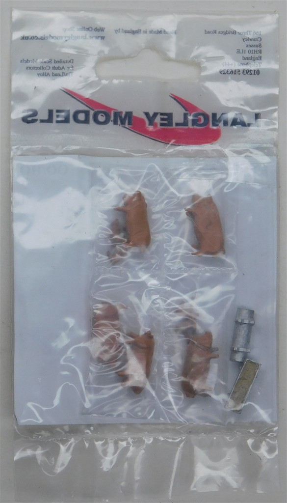 An unopened, white metal Langley Minature Models F127p PAINTED Pigs, piglets and feed troughs
