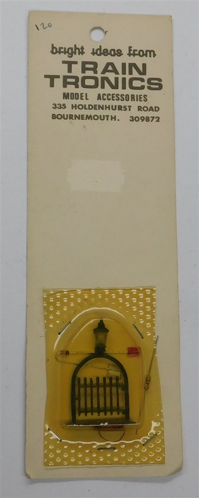 An unopened train-tronics Church Gate with LED lamp kit packet, with wiring instructions on the reverse of the packet