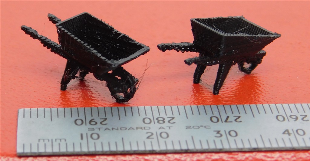 2 00 scale 3-d printed wheelbarrows, need finishing