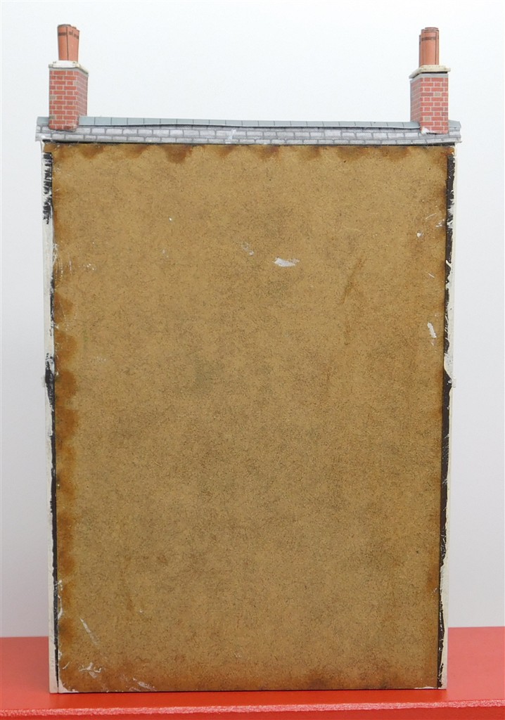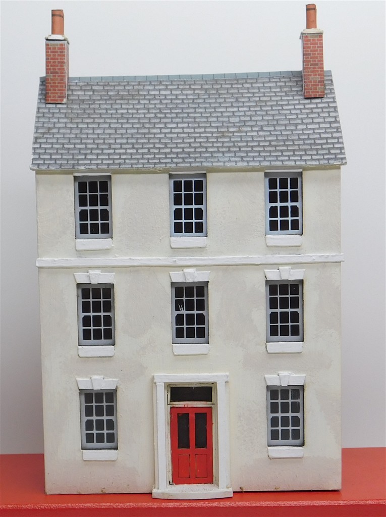 A homemade 3 storey low relief rendered Georgian style house, may be a painted Metcalfe model, chimneys need attention
