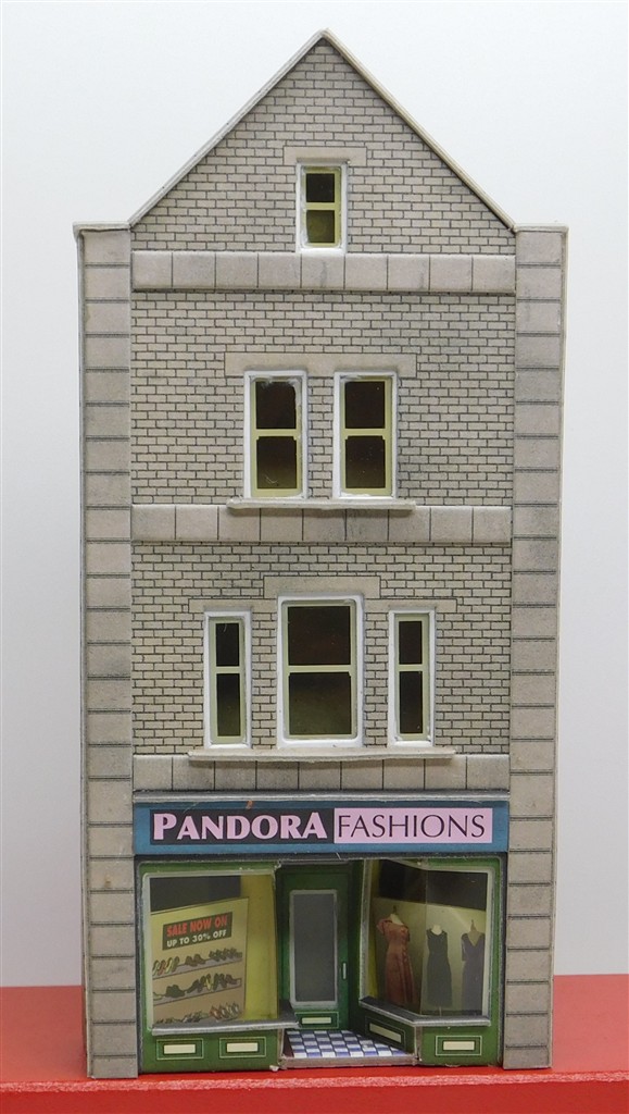 An assembled Metcalfe Pandora's Fashions low relief shop, reasonably well assembled but sadly the edges haven been finished