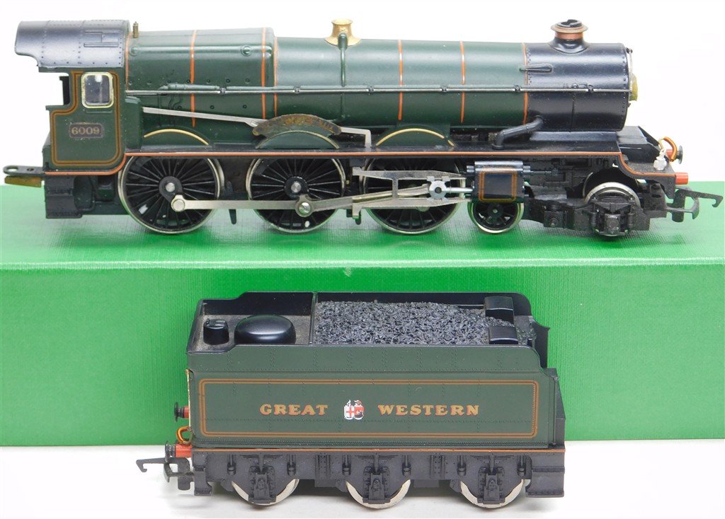 A Hornby tender drive renamed King with added lamps, repaint candidate, runs but would benefit from a thorough electrical clean, glue spots and marks, in fair condition, supplied in the tatty original box