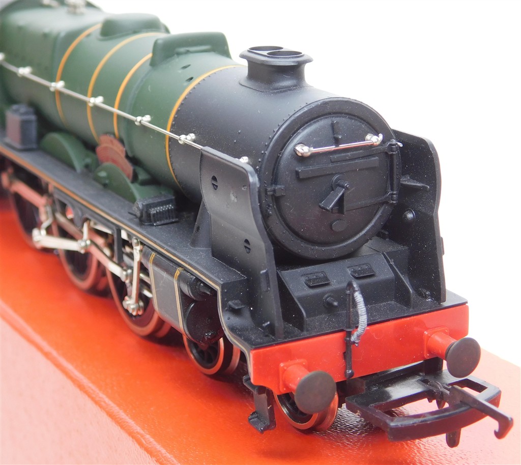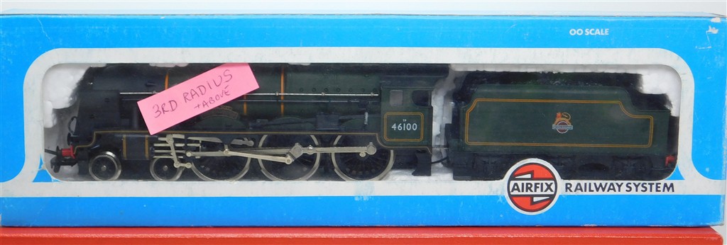 An Airfix 54121-3 Royal Scot number 46100, noisy runner, would benefit from careful lubrication, added front footsteps will need removal for use on 3rd radius curves or tigher, supplied in a tatty original box, sold as a project