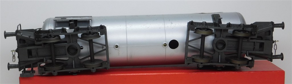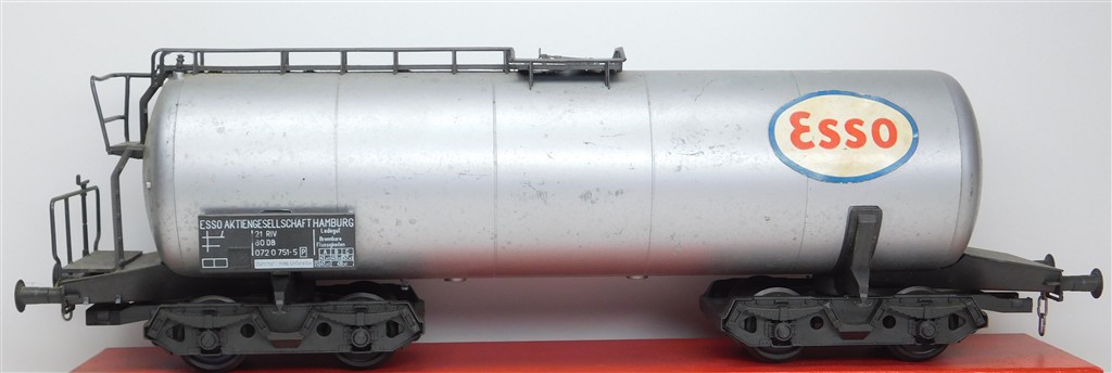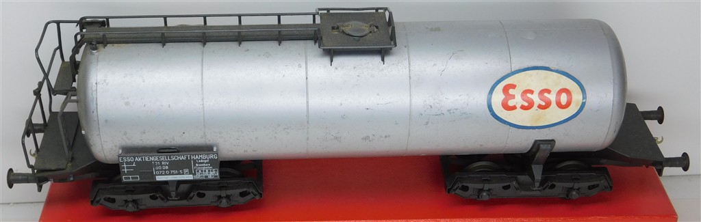 European 0 gauge: Rivarossi 0 gauge German DB Esso bogie tank wagon, 3 link couplings, missing under valves