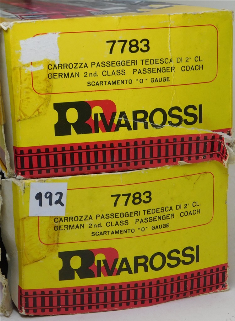 A Rivarossi 0 gauge 7783 German DB bogie 2nd class coach, scale length, no interior fitted, in good condition, supplied in the original box. Note these will need to be sent ParcelForce rather than Royal Mail due to their length, 59cm long over buffers, box is 66cm long.
