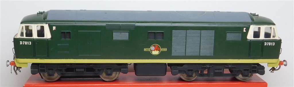 A nicely painted and detailed 0 gauge Tri-ang Big-Big Hymek with fine scale 2 rail two-axle drive chassis, good runner but needs the pickups to be kept clean, weight removed for safe transit, no original packaging
