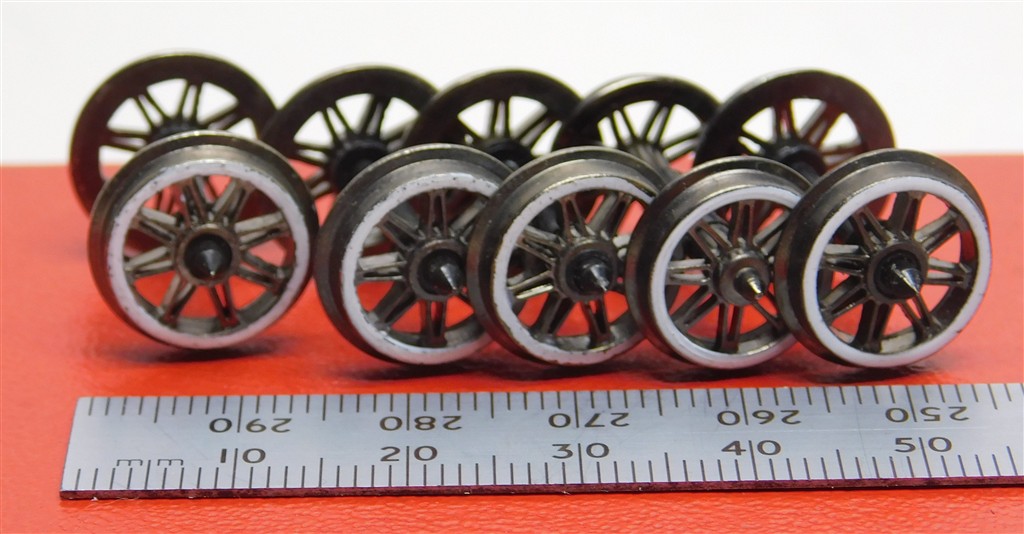Wheels & bogies: 5 Bachmann split spoke 12mm diameter wheels, rims painted white