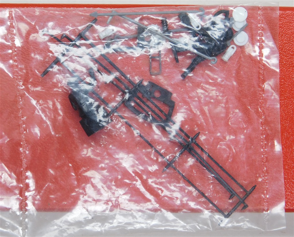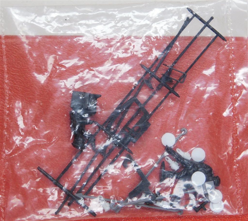 An unopened packet of Hornby driver, fireman, lamps and marker discs, spare coupling and brake gear
