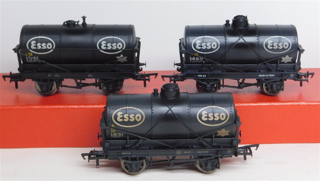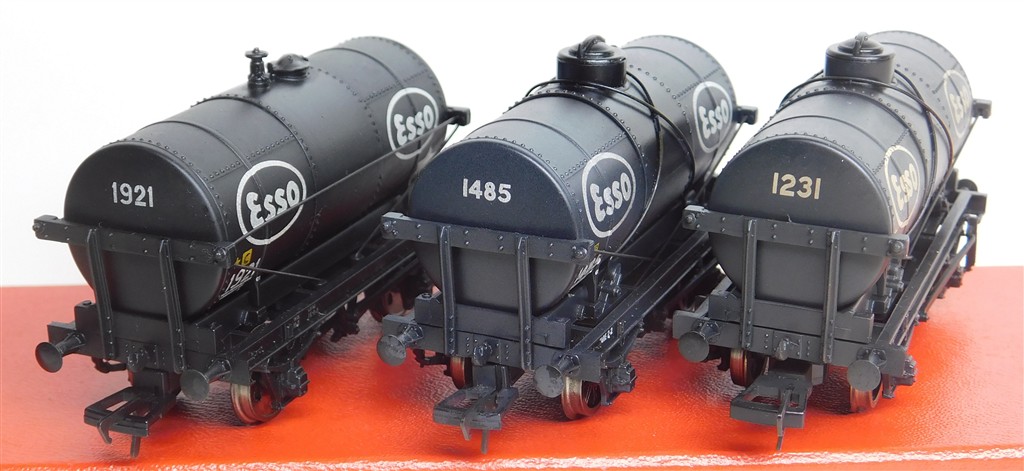 00 Wagons: 3 different Bachmann Esso black tank wagons number 1921, 1485 and 1231