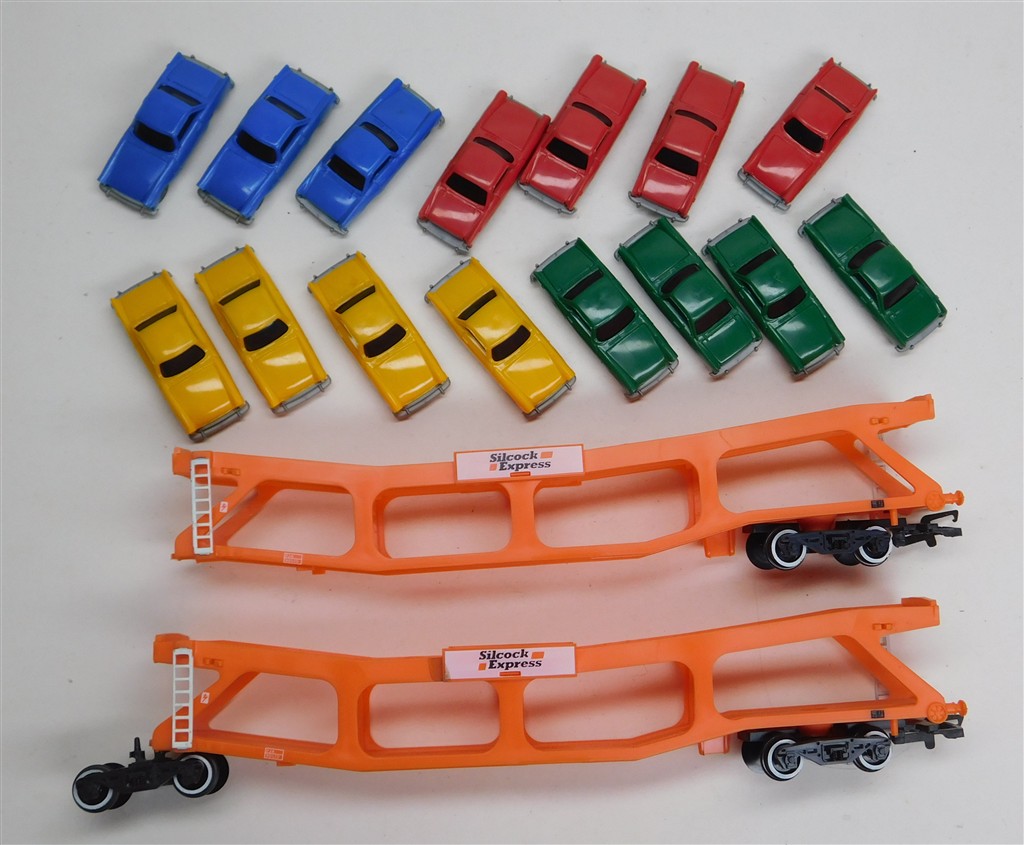 00 Wagons: Hornby R666 Silcock articulated car transporter with 15 cars