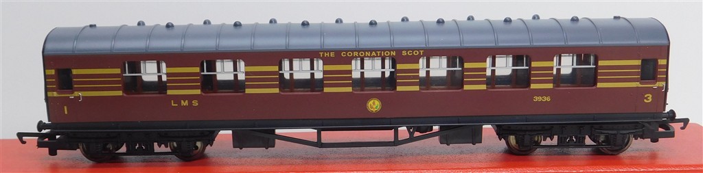 00 Coaches: Hornby LMS Coronation Scot red and gold composite coach number 3936