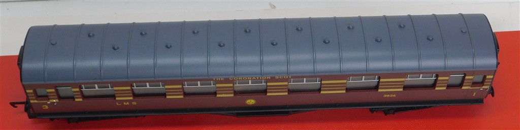 A Hornby LMS Coronation Scot red and gold composite coach number 3936, in very good condition, no original box