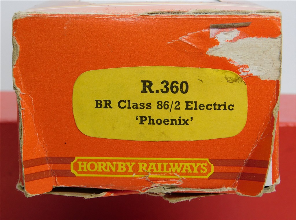A Hornby 1980s production R360 BR Class 86 numnber 86 219 Pheonix, tested and a good runner, in very good condition, supplied in the tatty original box with paperwork.