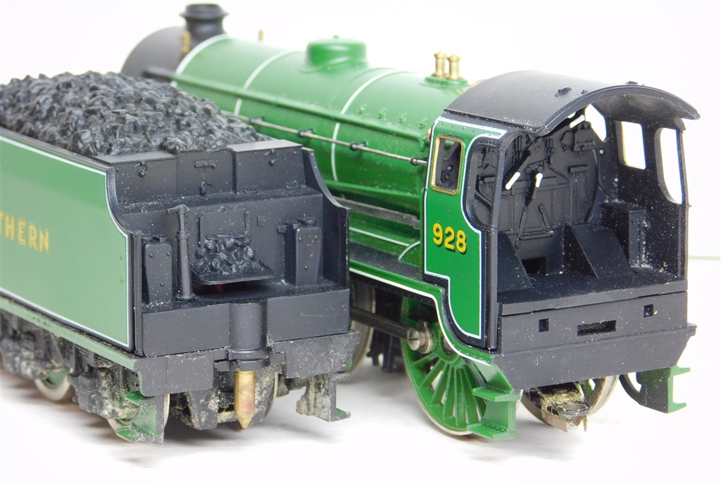 00 Steam Locos: Hornby R380 tender drive Southern malachite green Schools class steam loco number 928 Stowe